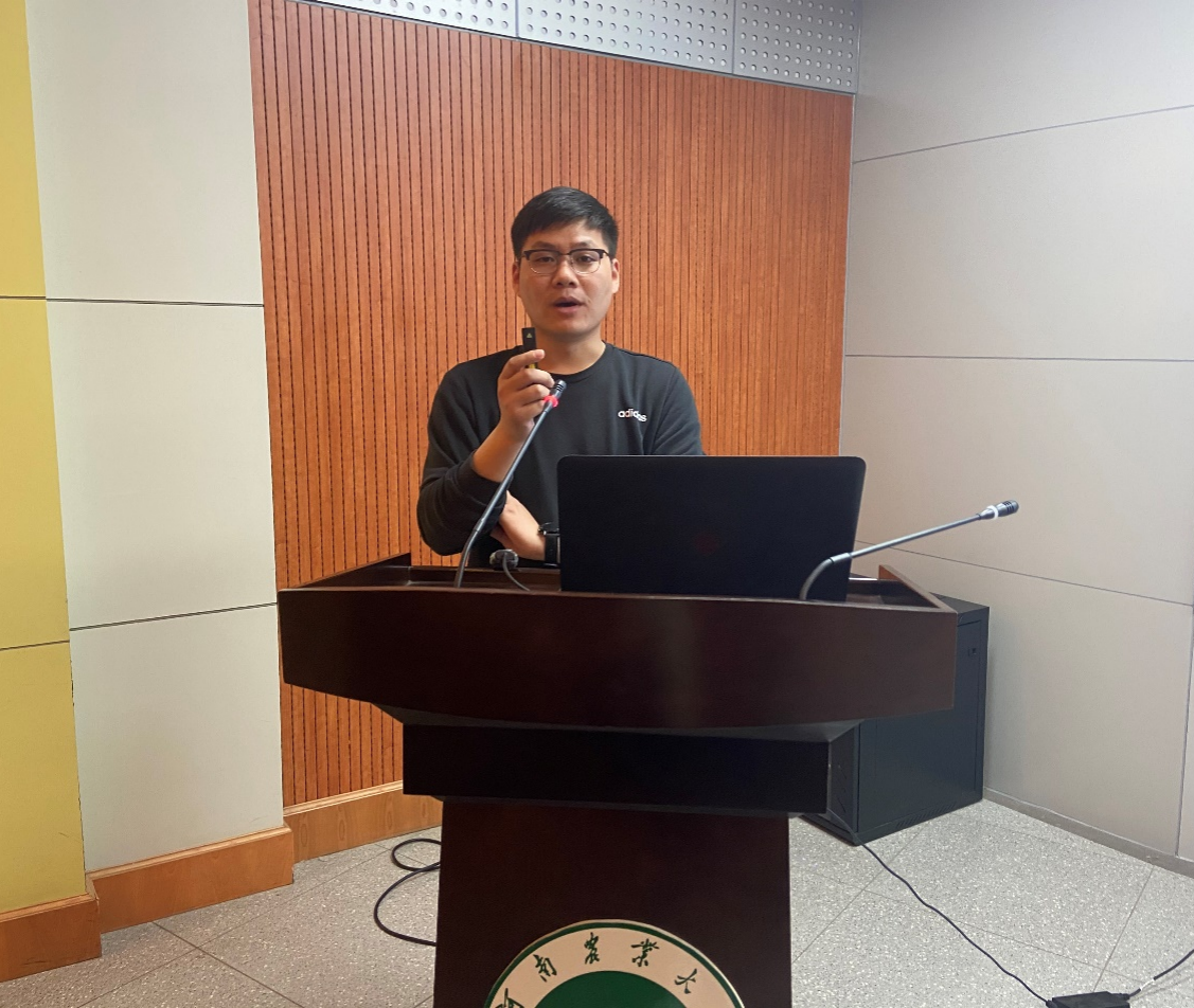 吕志军博士以“移栽机械优化设计平台交流分享”为主题,“从个人简介”、“研究生学习生活分享”、 “科研平台交流分享”、 “科研比赛及成果留影”以及“课题组研究进展”等五个方面深入阐述了如何进行科研工作。他指出,要做好科研工作和学习,就必须积极融入课题组,要主动参与课题组的任务,对自己的研究方向进行深入学习和研究。吕志军博士以自己的研究生学习生活为例,向与会研究生介绍了自己参与第二代浮船板的研发、建模以及产品加工与装配的工作。同时,吕志军博士还展示了自己的科研成果以及比赛留影,带同学们了解了世界领先的取苗式和取钵式回转式钵苗移栽机构。最后,吕志军博士告诫同学们,要珍惜研究生期间的美好时光,这些都将是人生路上最宝贵的财富;在学习的过程中,要不断交流与分享,学习他人之所长;在进行科研的道路上,要树立好自己的目标,付诸行动、扎实基础。
