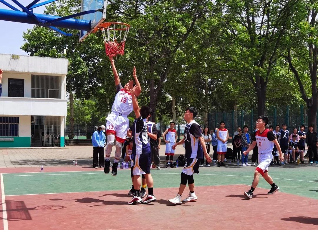 本次比赛共三个场地,分别进行机械系与能源系、农机系与交通系、电信系与研究生的篮球比赛,随后又进行了教职工与毕业生的篮球比赛。