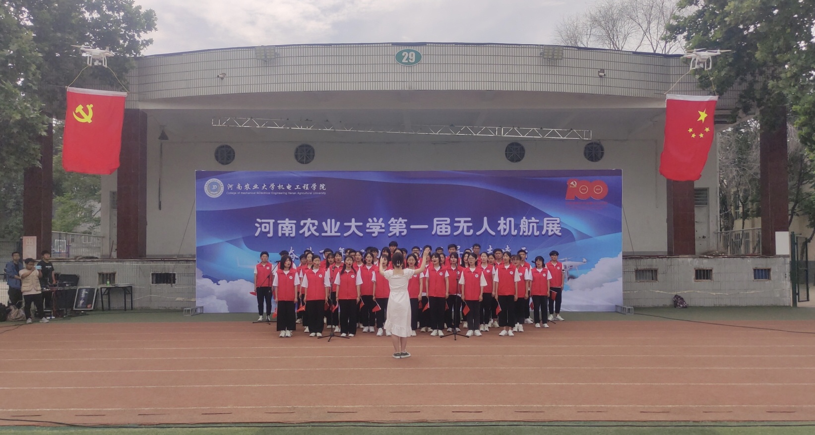 隆重举办“奋斗百年心向党,漫天异彩志凌云”为主题的河南农业大学第一届无人机航展活动