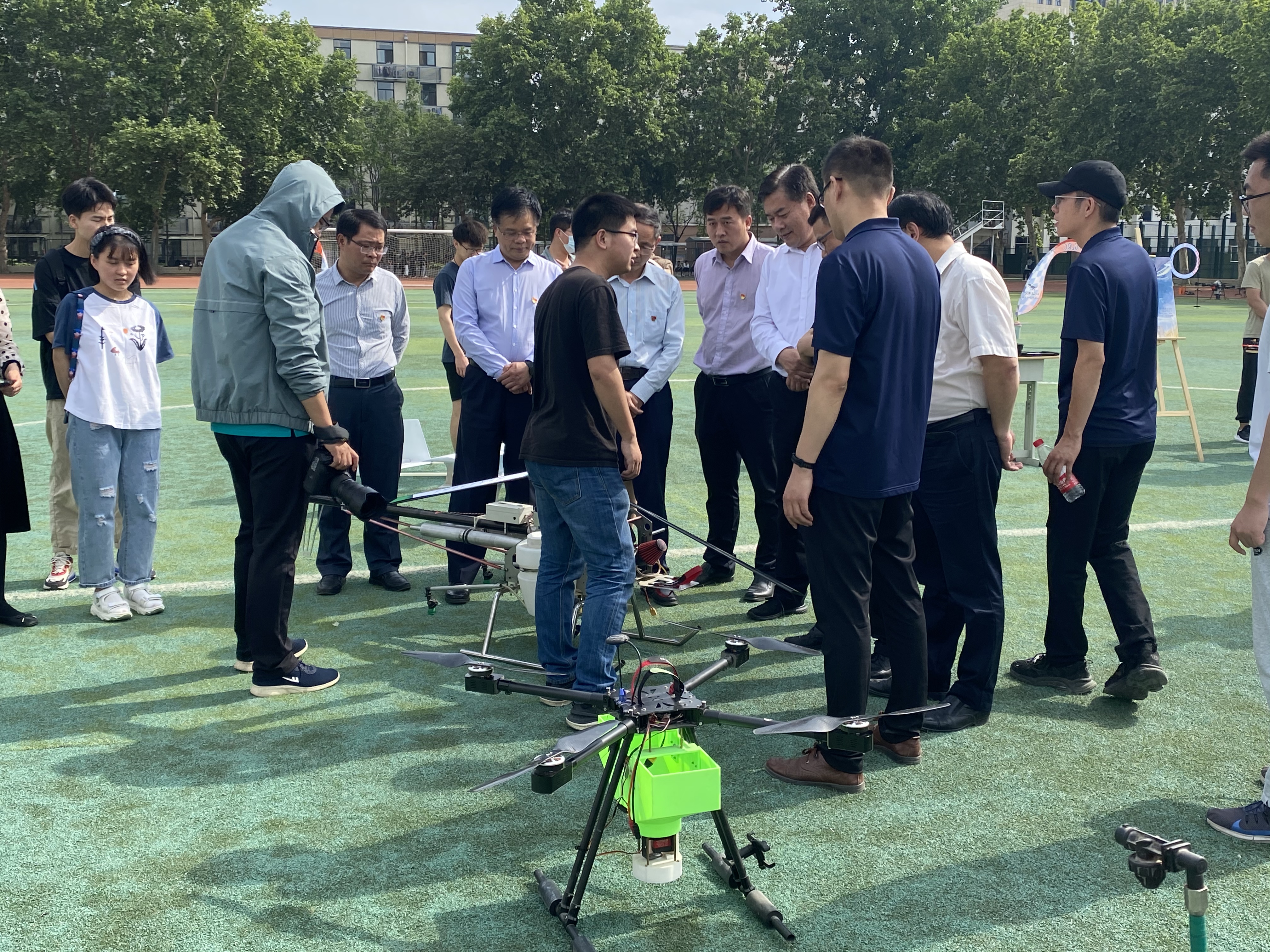 近些年,伴随着一系列科研成果的研发使用,无人机在农业生产模式转变中逐渐崭露头角,无论是在病虫害监测,还是在农药喷洒上,无人机都体现着不可替代的关键作用。毋庸置疑,农用无人机就是新时代“会飞的农夫”。本次活动既给广大师生科普了当前无人机的发展及应用情况,展示了建党百年来我国农用无人机领域在解决“三农”问题上的实践应用所取得的傲人成就,同时激发了我校师生对现代农业装备的创新创业兴趣。引导更多青年学子扎根基层,助力乡村振兴,以强农兴农为己任,为实现农业农村现代化矢志奋斗。