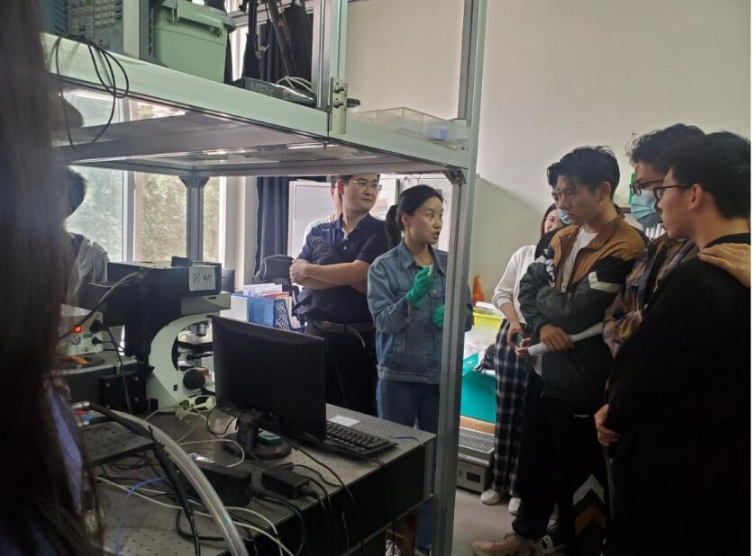 副院长胡建东教授为本次活动精心准备了专题报告,介绍了此次活动的主要内容和流程,并结合最新研究成果向大家阐明了光电子学在农业、环境和食品安全等领域中的重要应用意义和价值。期间还将光电子学技术与同学们所学课程相联系,分别介绍了专业基础课、核心课在实际应用中的重要作用。报告激发了同学们的极大兴趣,同学们带着对光电子如何应用于农业领域的好奇心和求知欲开启了实验室的探索之旅。