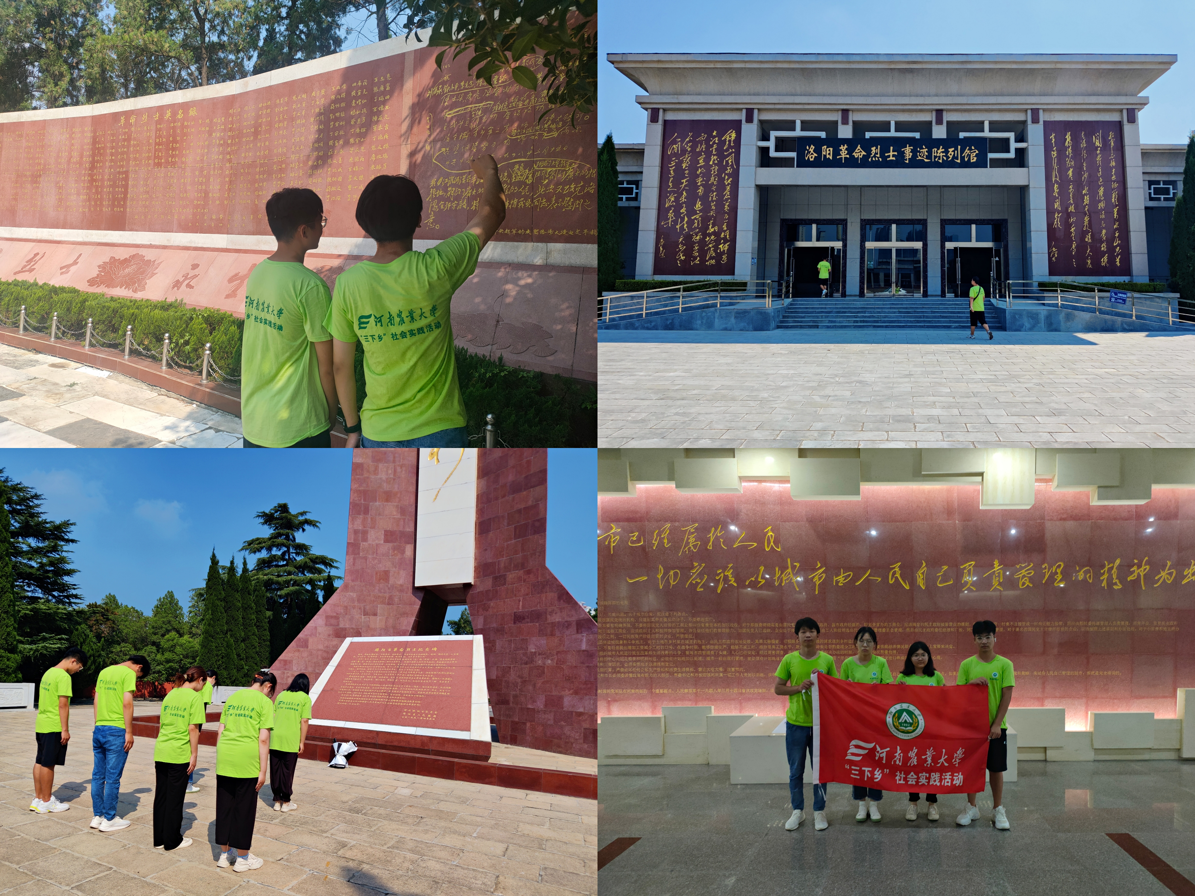 最后一站,队员们前往洛阳市烈士陵园,走进烈士陵园,迎面矗立的便是“革命英烈永垂不朽”的纪念碑,全体队员面朝石碑,深深鞠躬,以表敬意。接着,他们开始参观烈士之墓,一排排、一座座坟墓安安静静地在陵园之内,无声地保护着每一个中国人民,墓碑上记载着他们英雄事迹,一个又一个历史课本上的战争场景仿佛鲜活了起来,他们有的少年怀壮志,热血洒故土,有的统领军队、冲锋在前,一个又一个、一群又一群,把不屈的意志留在战场,把真诚的爱留在故乡。望着数不清的坟墓、四季常青的松柏,实践队员们的心中不禁想起那句“为什么我的眼里常含泪水?因为我对这片土地爱得深沉”。正是他们无私伟大的爱,才换来了如今幸福美满的生活,队员们纷纷表示,日后定将不负先烈愿望,勇往直前,为实现伟大中国梦而不懈奋斗。