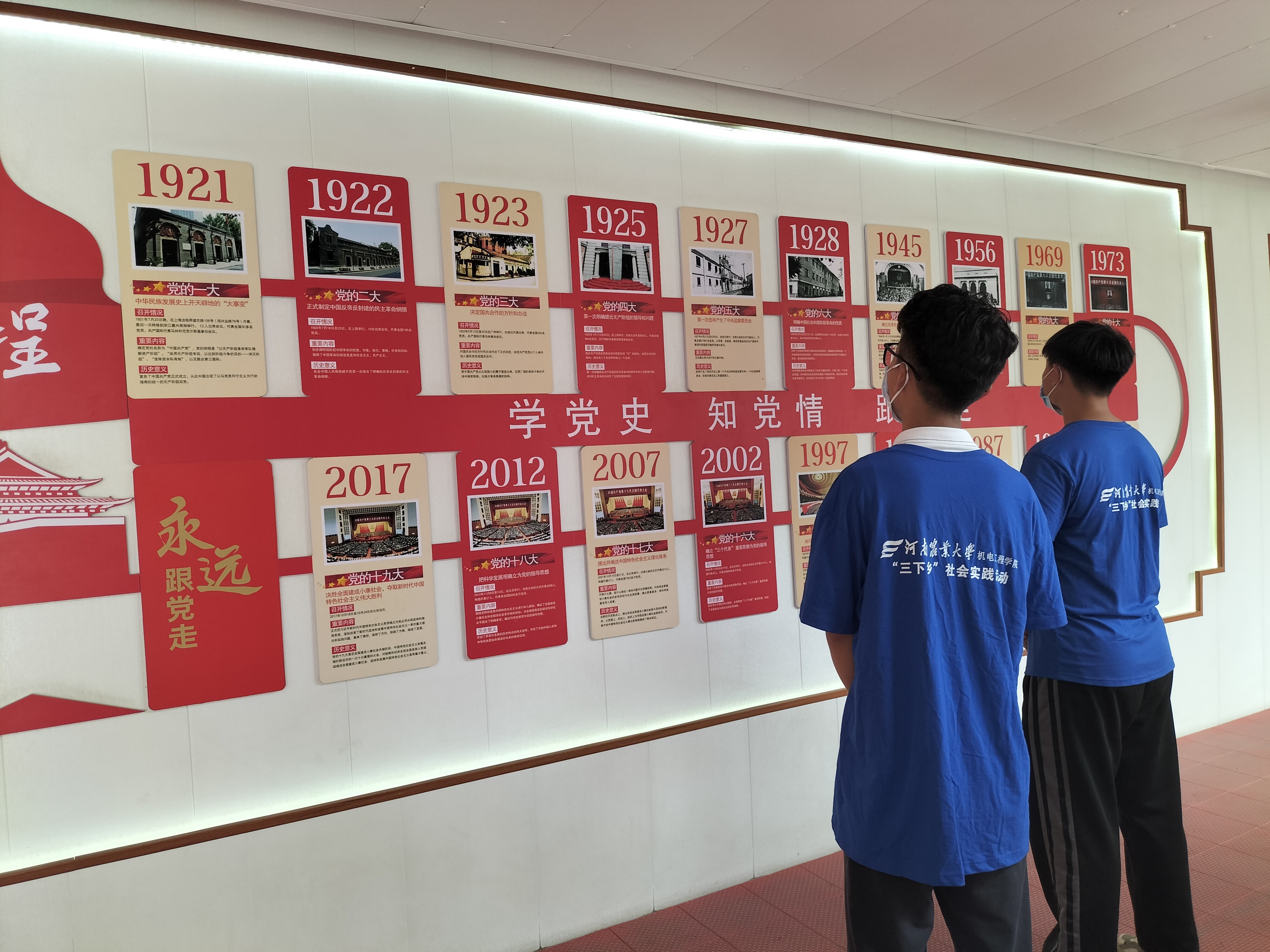 实践团队一行始于二七纪念馆下的建证长廊,通过学习建党知识长廊,团队成员深入了解了建党的伟大革命历程。同时,团队成员为宣传革命先烈的故事和精神,化身小导游,为前来参观的人们讲解过去的峥嵘岁月,使更多人了解红色故事,激励大家把爱党、爱国、爱社会主义的热情传递下去。紧接着,团队成员一起来到河南博物院领略中原文化的源远流长,按照历史顺序,从第一展厅开始,一直走到顶层的天文地理的奥妙世界。参观过后,团队成员对我们的中华历史有了新的理解和认识,同时也感受到了河南文化的厚重和灿烂。该团队成员表示,在今后的学习中,他们要继续将理论与实践相结合,在实践中收获成长、在实践中发挥自己的才能、在实践中肯定自身的价值!