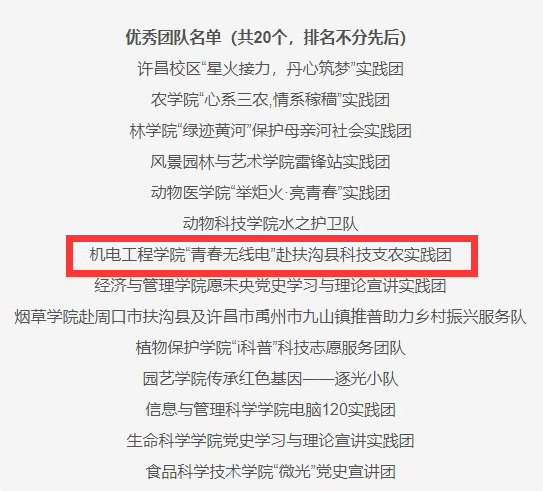 2022年度河南农业大学暑期“三下乡”社会实践优秀典型名单