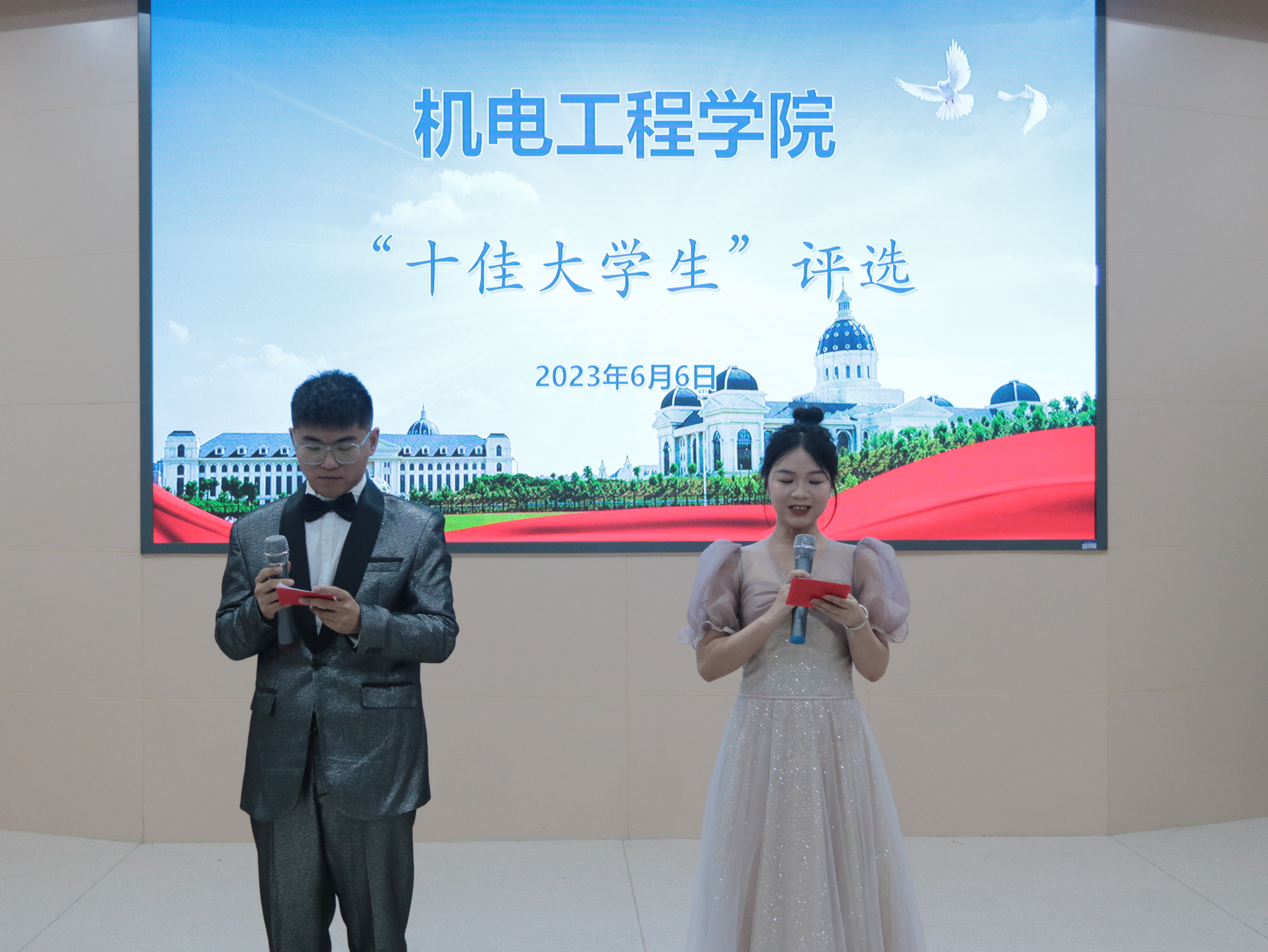 关于评选2023年十佳大学生的通知》的要求,本着公平、公正、公开的原则,经个人申报,学院审查,结合学生个人综合表现,最终选拔12人参加现场决赛。