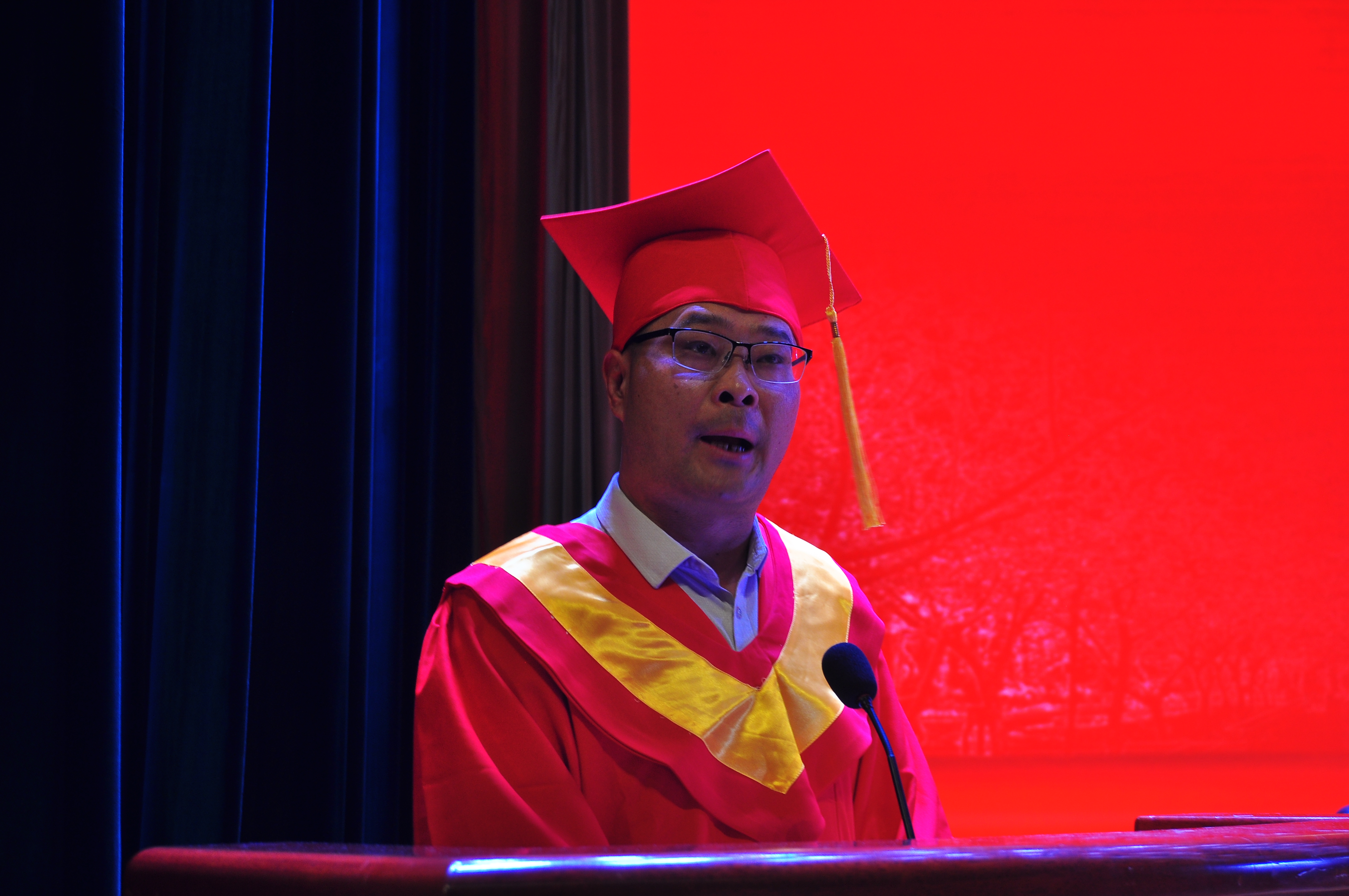 教师代表王万章进行发言。他回顾了2019级毕业生在疫情期间的艰苦岁月,带领大家回忆难忘的师生情。同时,他将全院教师的嘱托带给大家:此次意义非凡的角色转变,同学们要积极服务社会,服务国家,在保重身体的前提下,去奋斗,去追逐更高的理想。最后,他祝愿各位毕业生不负韶华,扬帆起航,在未来的人生旅途中继续谱写辉煌绚丽的青春乐章。