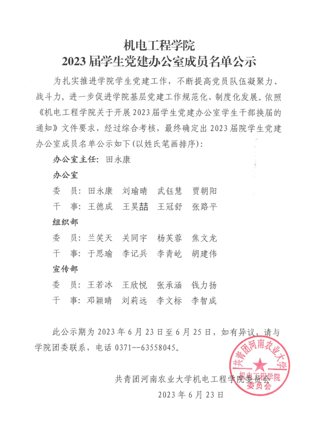 战斗力,进一步促进学院基层党建工作规范化、制度化发展。依照《色情av影片 关于开展 2023 届学生党建办公室学生干部换届的通知》文件要求,经过综合考核,最终确定出 2023 届院学生党建办公室成员名单公示如下(以姓氏笔画排序):