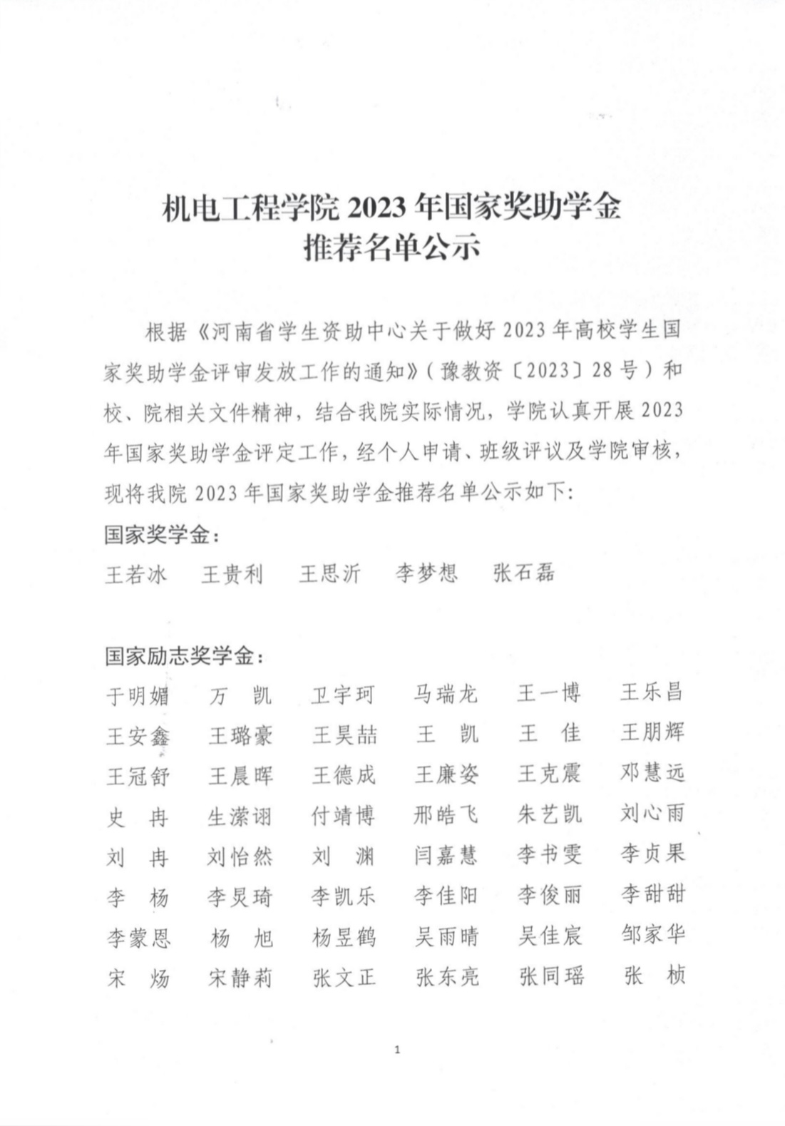 根据《河南省学生资助中心关于做好2023年高校学生国家奖助学金评审发放工作的通知》(豫教资〔2023〕28号)和校、院相关文件精神,结合色情av影片 实际情况,学院认真开展2023年国家奖助学金评定工作,经个人申请、班级评议及学院审核,现将色情av影片 2023年国家奖助学金推荐名单公示如下: