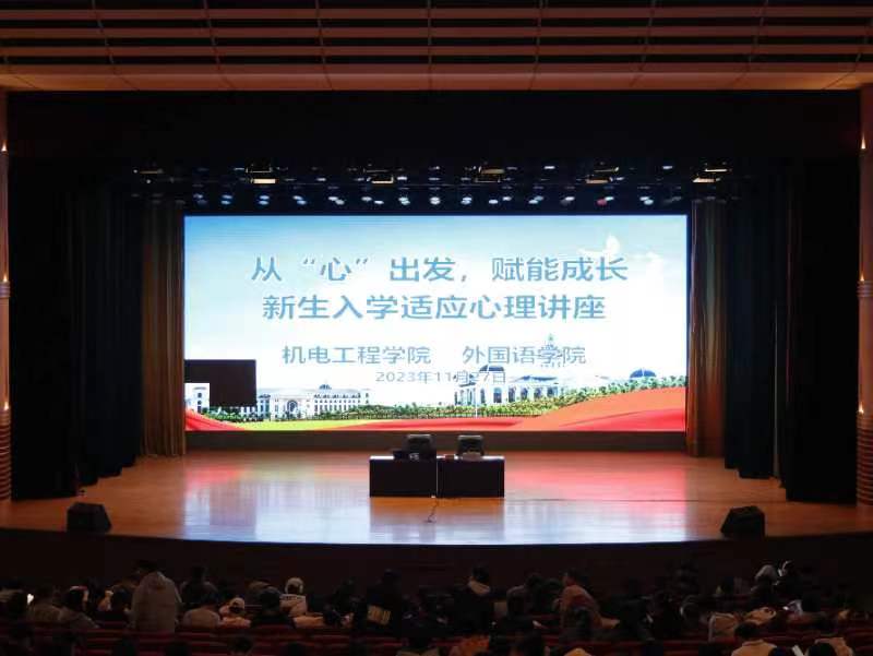 于文化路校区千人大礼堂举办“从‘心’出发,赋能成长”新生入学适应心理讲座,讲座由我校心理健康教育中心专职教师贾晓冉主讲,23级全体新生及心理委员参加会议。