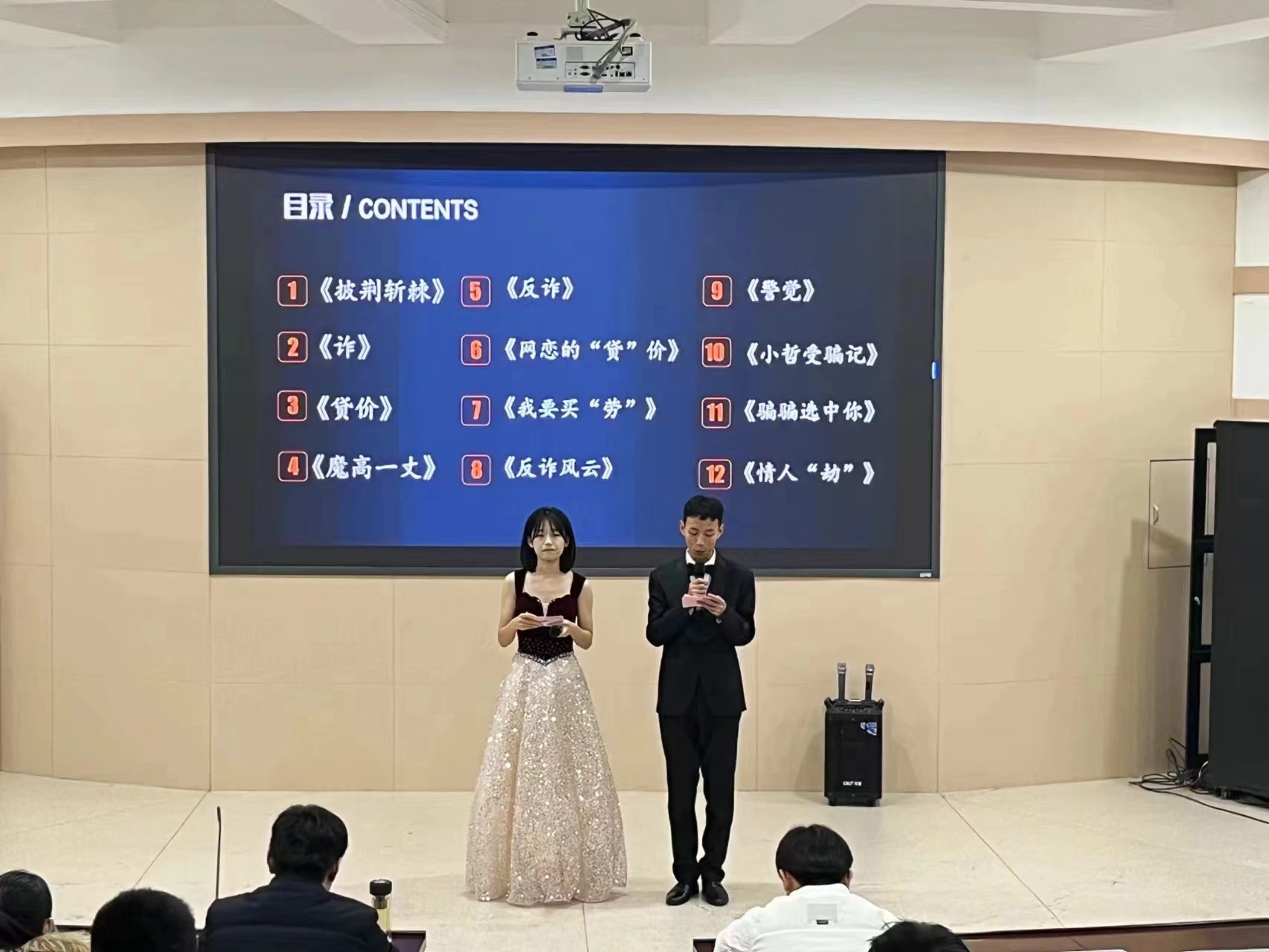 在主持人慷慨激昂的开场致辞声,本次大赛正式拉开帷幕。决赛现场,一部部精彩的反诈微电影作品逐一呈现,通过生动的故事情节和精湛的表演技巧,揭示了诈骗的种种手段,传递了防范诈骗的知识,增强了大家的防范意识。每一帧揭露诈骗真相的画面,每一幕警示公众的场景,都展现出参赛队伍的深入研究和精心制作。每部微电影时长虽短,但内容丰富、情感表达到位、教育意义深远,令现场观众印象深刻,展现出色情av影片