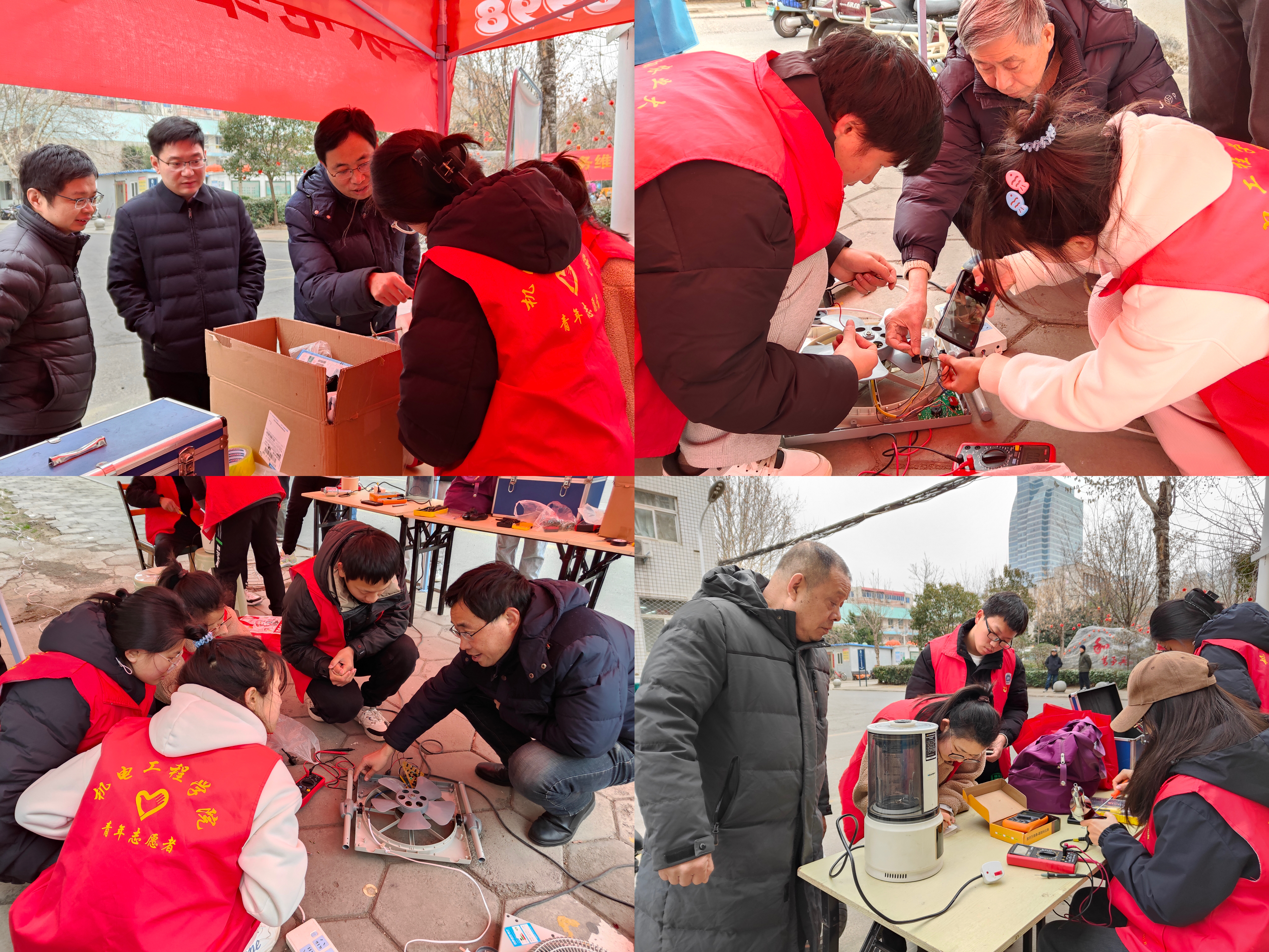 3月5日,色情av影片 组织雷锋站志愿者协会和无线电协会前往文化路校区农大一区家属院进行雷锋日家电维修志愿活动。院党委书记李世欣、院长胡建军、党委副书记宋晶、团委书记黄笑莅临现场指导活动。