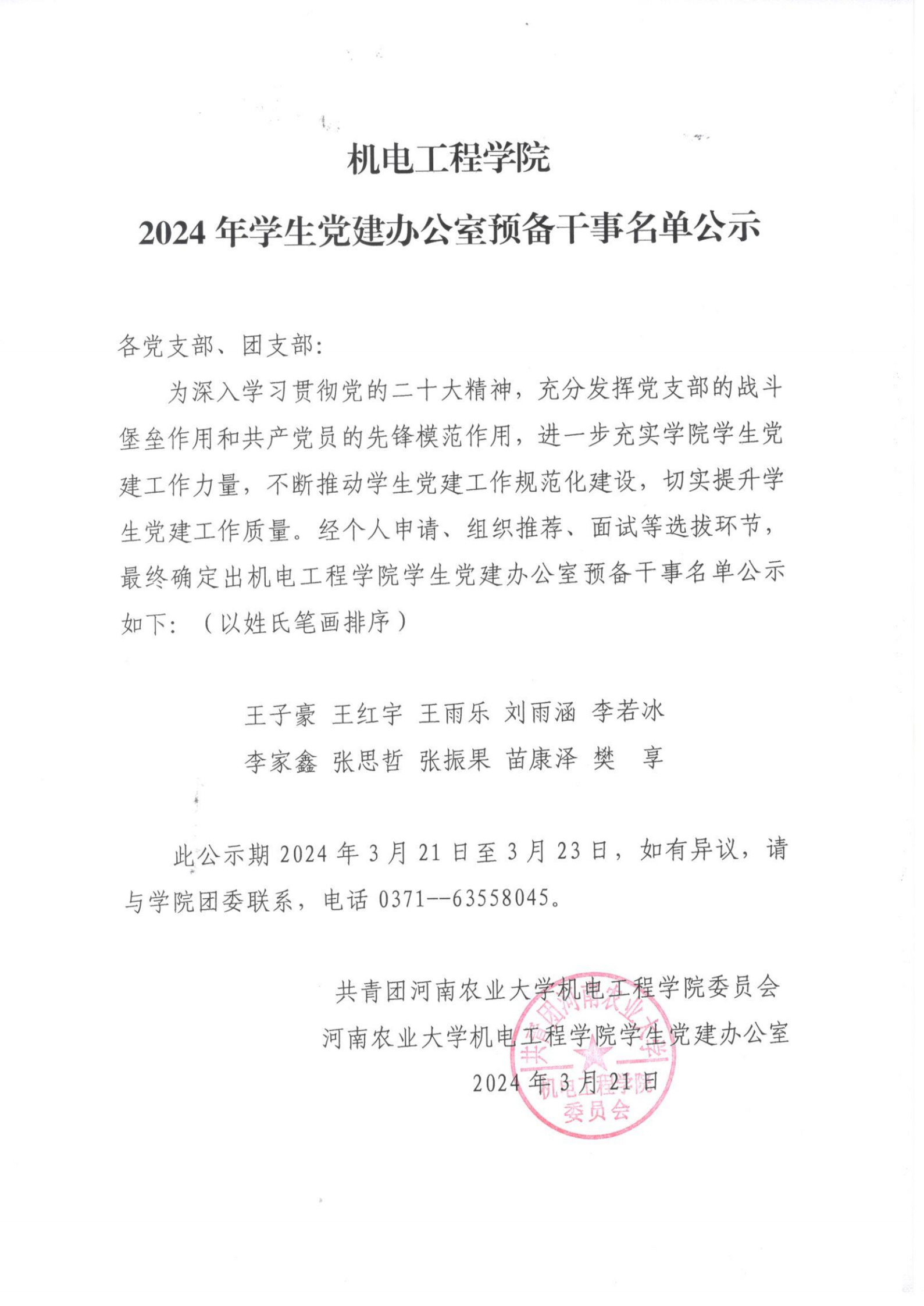 色情av影片 2024年学生党建办公室预备干事名单公示
