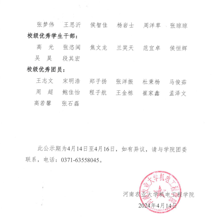 根据《河南农业大学先进班集体、红旗团支部、三好学生、优秀学生干部、优秀团员评选办法》的文件精神,本着公平、公正、公开的原则,经个人申报、班级评选、学院审查,结合班级综合表现,经学院学生工作领导小组研究决定,现将色情av影片 校级先进班集体、红旗团支部、三好学生、优秀学生干部、优秀团员推荐名单进行公示,公布如下(排名不分先后):
