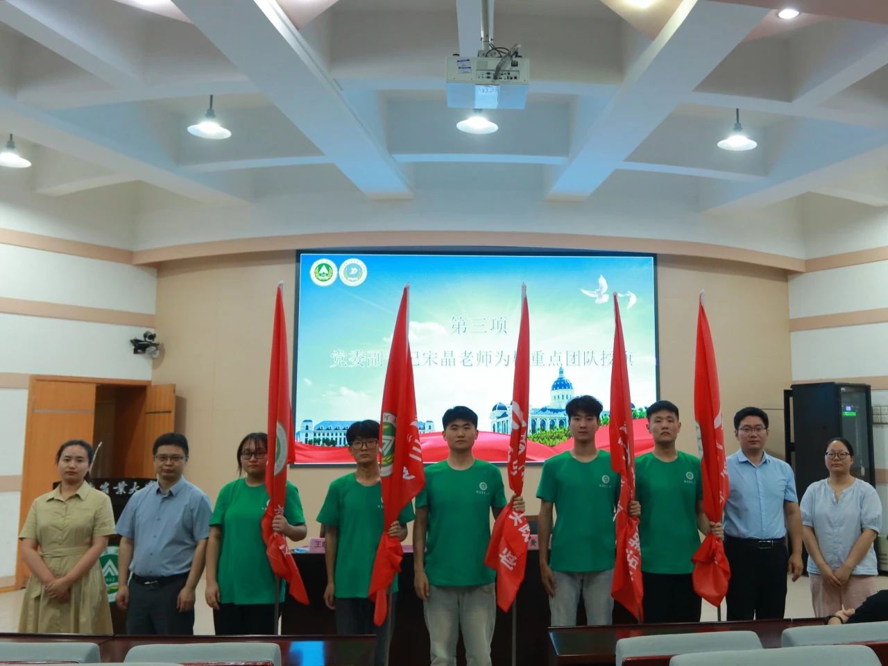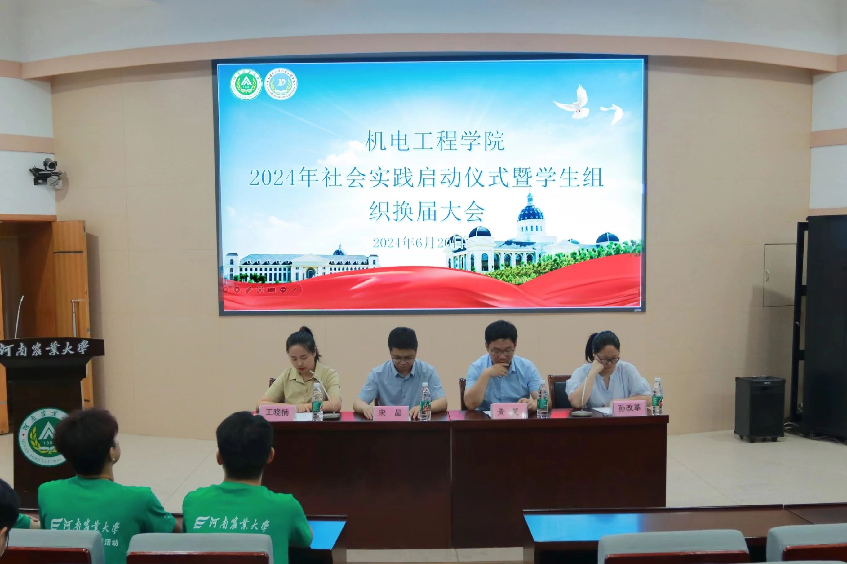 会上,王晓楠宣读了《2024年河南农业大学暑期社会实践文件》。社会实践团队代表朱飞扬进行发言,他首先感谢学院提供实践的机会,表示实践是提升素质和了解社会的重要途径,有利于大学生认识自身不足,此次活动与农村联系紧密,对乡村振兴有激励作用,并表示要积极完成任务,展现机电学子风采。最后宋晶为校重点团队授旗并合影留念。