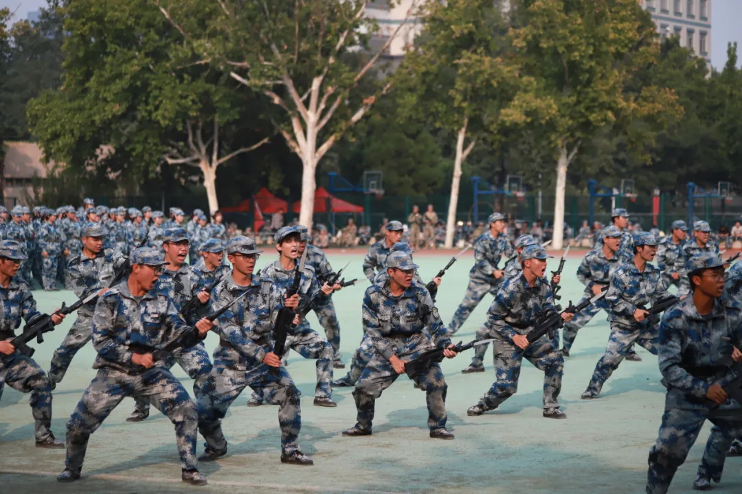 学子在刺杀操表演中,更是将军训的成果展现得淋漓尽致。他们手持模拟刺刀,动作迅猛而准确,每一次挥刀都伴随着响亮的口号,展现出极高的训练水平和顽强的战斗意志。他们以汗水浇灌梦想,用毅力铸就辉煌,赢得了学校领导、老师和同学们的广泛赞誉,也为自己的军训历程画上了圆满的句号。