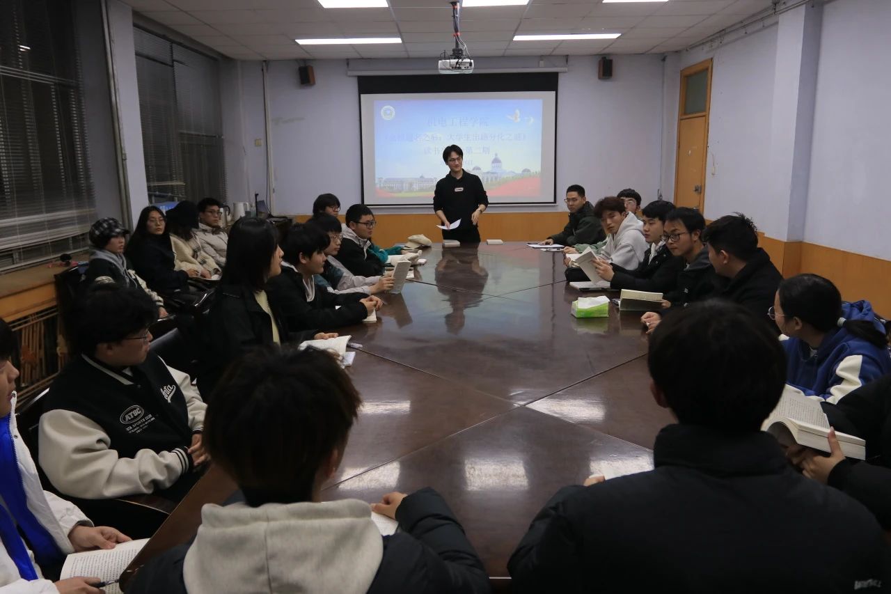于文化路校区15号楼二楼会议室举办第二期《金榜题名之后:大学生出路分化之谜》读书交流会。年级辅导员梁凯凯出席此次会议,24级各班代表参加。本次活动由心农协会组织并主持。
