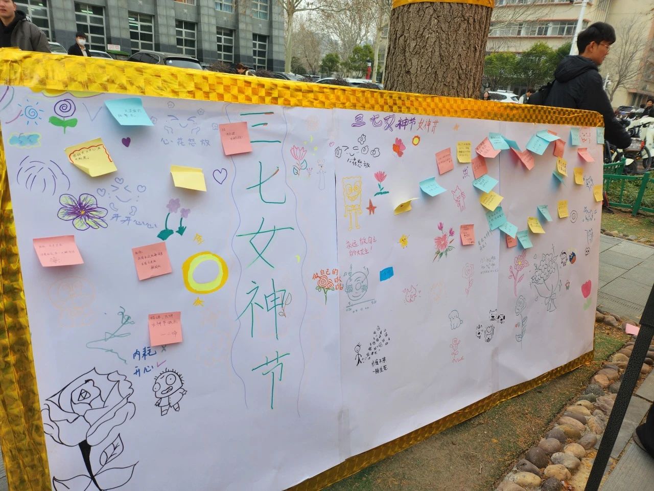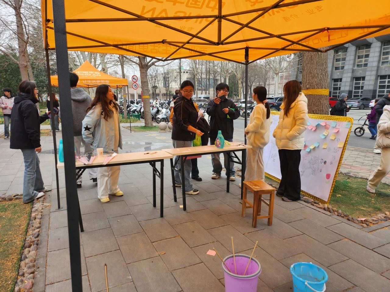 活动现场热闹非凡,设置了“歌声传唱”、“心系祝愿”、“投壶化箭”等趣味小游戏,并精心准备了诸多精美礼品。在“歌声传唱”环节中,悠扬的歌声回荡在空中,熟悉的旋律触动着每个人的心弦。“心系祝愿”展板上,五颜六色的便签随风飘动,上面写满了对女生们的美好祝愿,传递着对女生们的敬意与关爱。在“投壶化箭”游戏中,女生们展现出巾帼不让须眉的英姿,纷纷投出精准的一箭,现场欢声笑语连连。