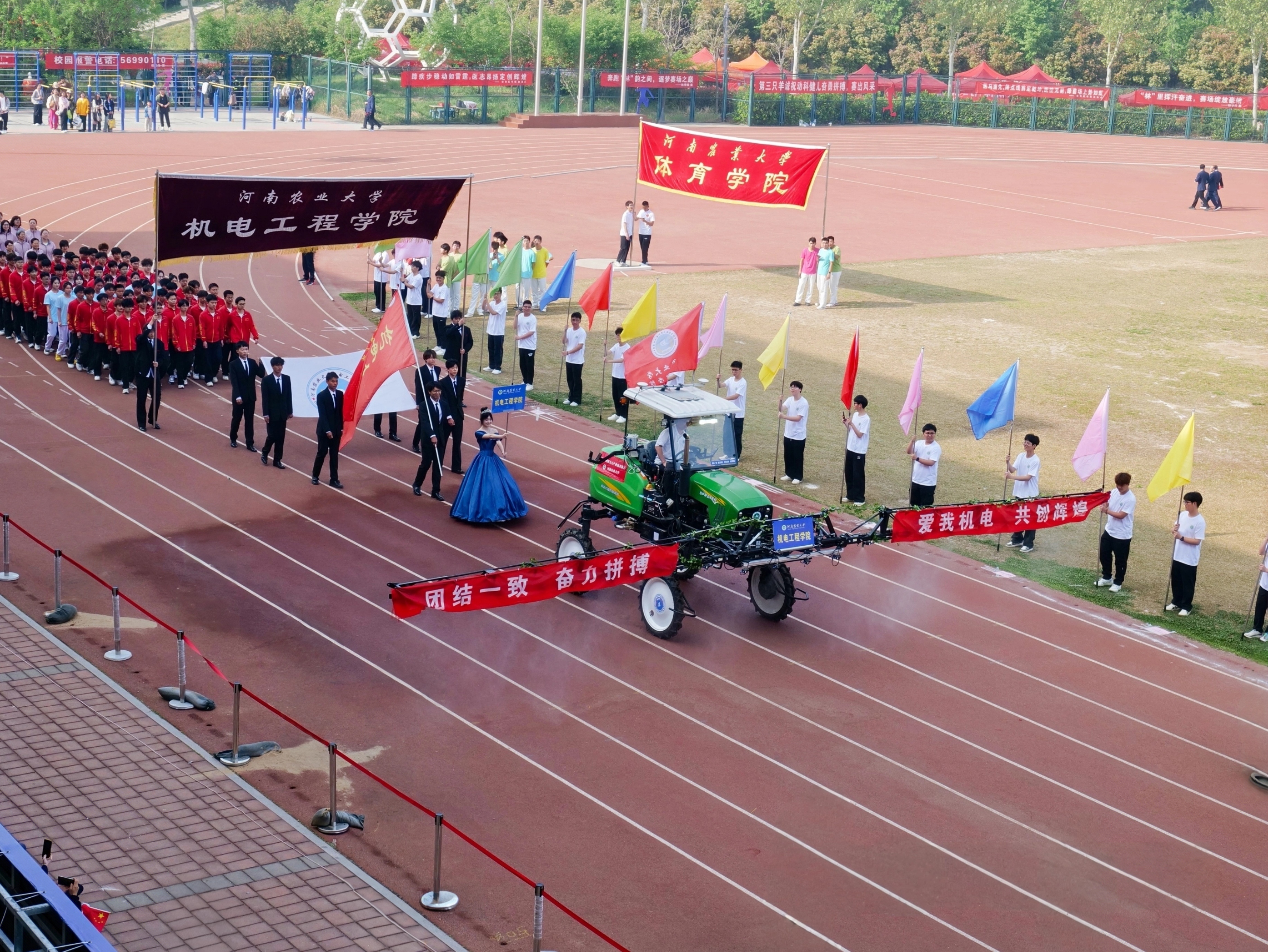 彩旗队高举院旗,以矫健的身姿迈向主席台。机电学子自制的模型车展示了机电学院的学术科研成果,同时,“团结一致,奋力拼搏,爱我机电,共创辉煌!”的院训响彻会场,彰显了机电精神。色彩斑斓的旗帜随风飘扬,热情洋溢的呼喊声冲破云霄,展现了机电学子的青春活力与风采。