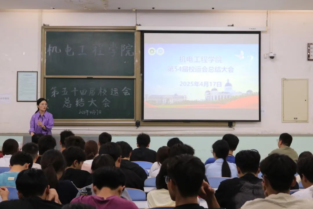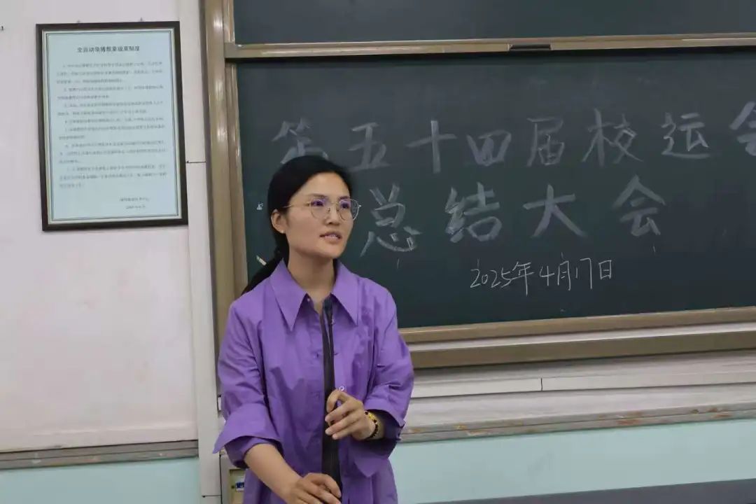 最后,胡亭亭对本次大会进行了总结发言。她希望全体师生能够从本次比赛中汲取教训,认识到体育竞技没有捷径可走,要以“归零”心态重新出发,用汗水弥补差距,用行动兑现承诺,全面提升学院的体育竞技能力。