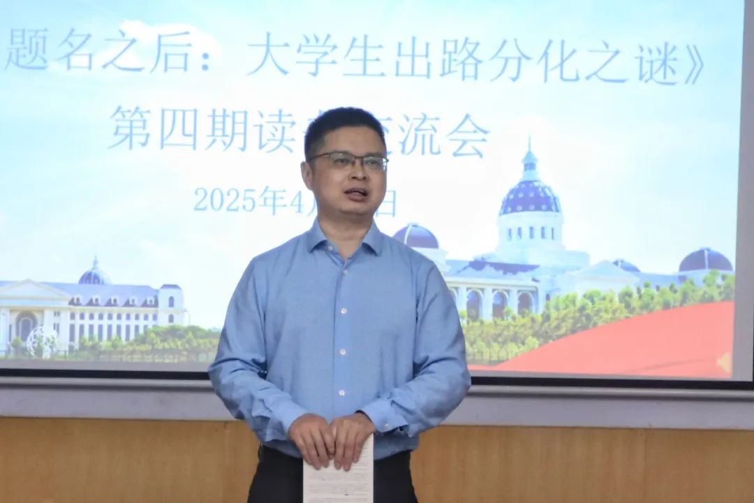 于文化路校区15号楼二楼会议室举办第四期《金榜题名之后:大学生出路分化之谜》读书交流会。院党委副书记宋晶,年级辅导员梁凯凯出席此次会议,24级各班代表参加。本次活动由心农协会组织并主持。