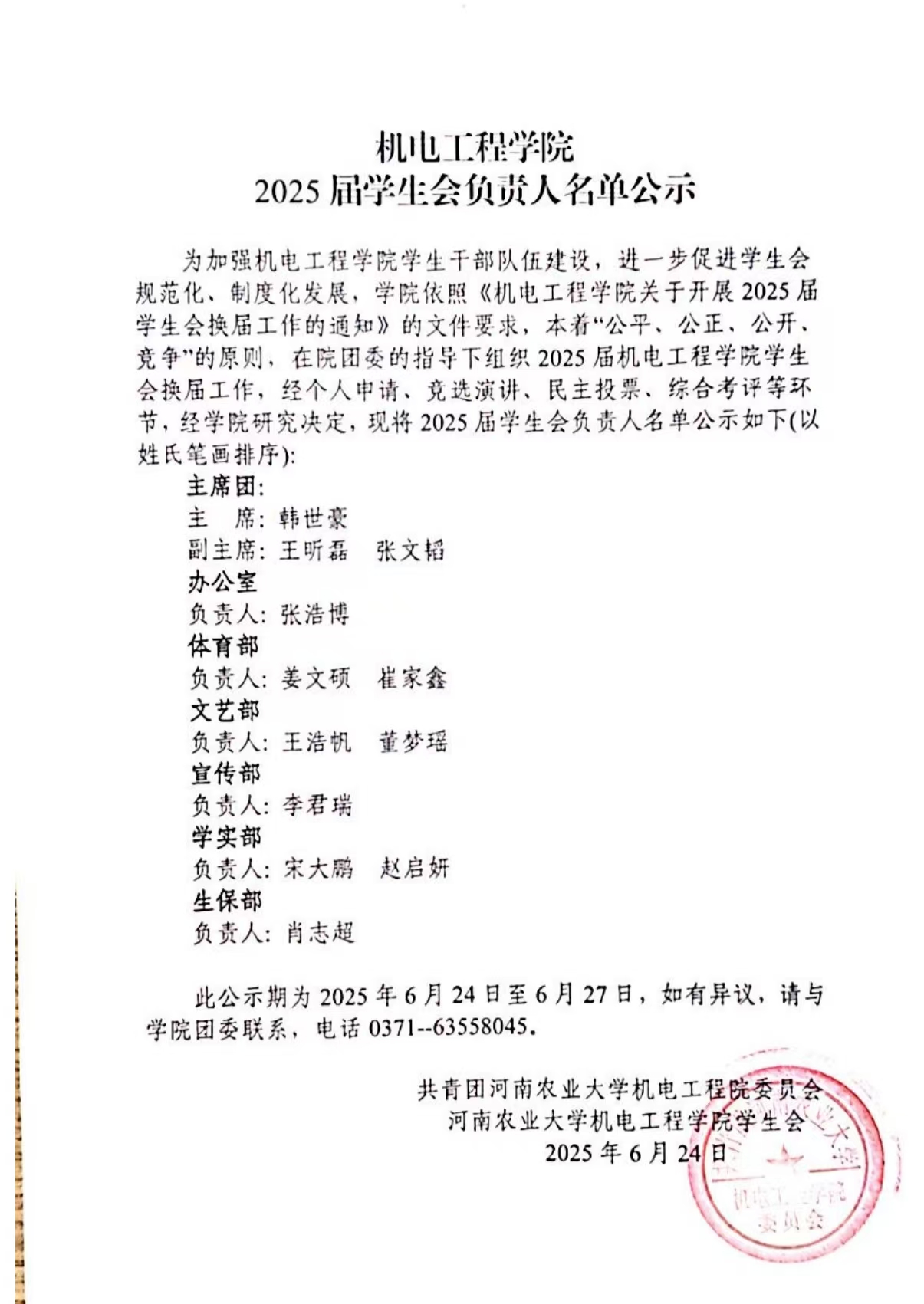 为加强色情av影片 学生干部队伍建设,进一步促进学生会规范化、制度化发展,学院依照《色情av影片 关于开展2025届学生会换届工作的通知》的文件要求,本着“公平、公正、公开、竞争”的原则,在院团委的指导下组织2025届色情av影片 学生会换届工作,经个人申请、竞选演讲、民主投票、综合考评等环节,经学院研究决定,现将2025届学生会负责人名单公示如下(以姓氏笔画排序):