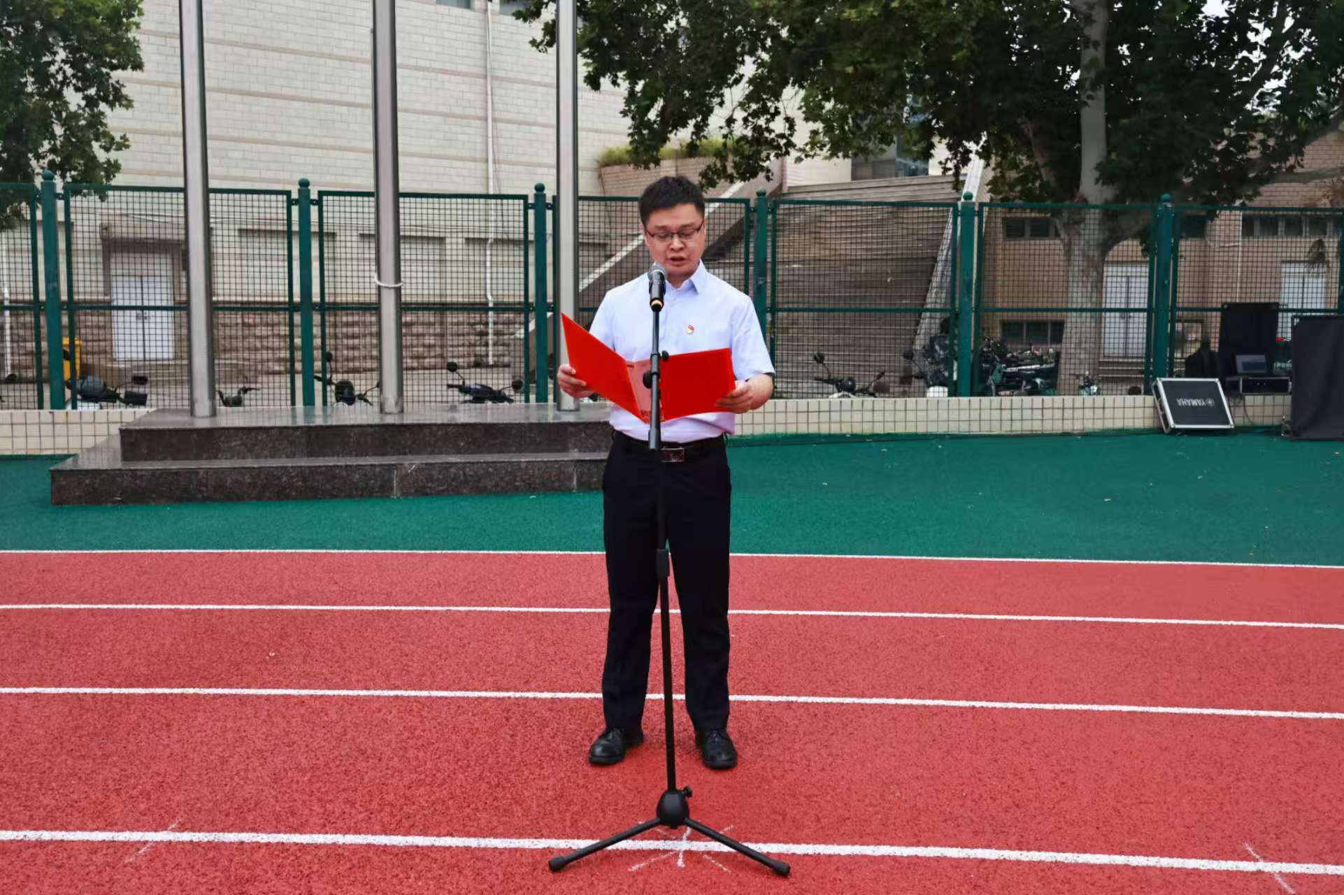 于文化路校区操场举行“携初心扬帆起航,踏新程共铸辉煌”升国旗仪式。学院领导老师及2025级新生、学生党员代表、青马班学员等参加仪式。此次升国旗仪式由宋晶主持。