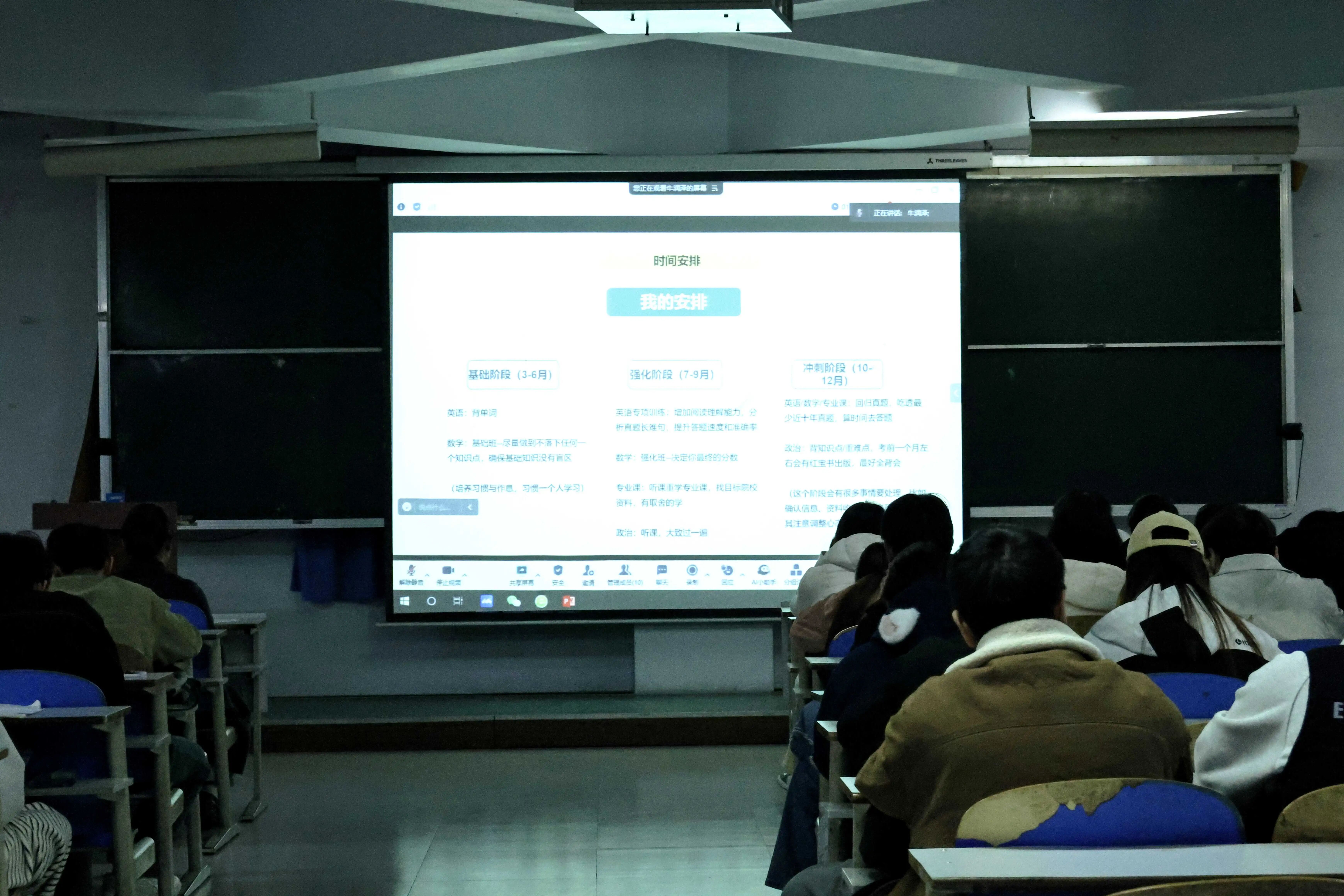 在桃李园学生公寓桃西楼601教室举办考研分享会。本次分享会邀请到中国农业大学,长安大学等多所高校共11位在读学长学姐,为同学们带来干货满满的考研经验分享。会议由年级辅导员孙改革主持,23级全体学生参加。